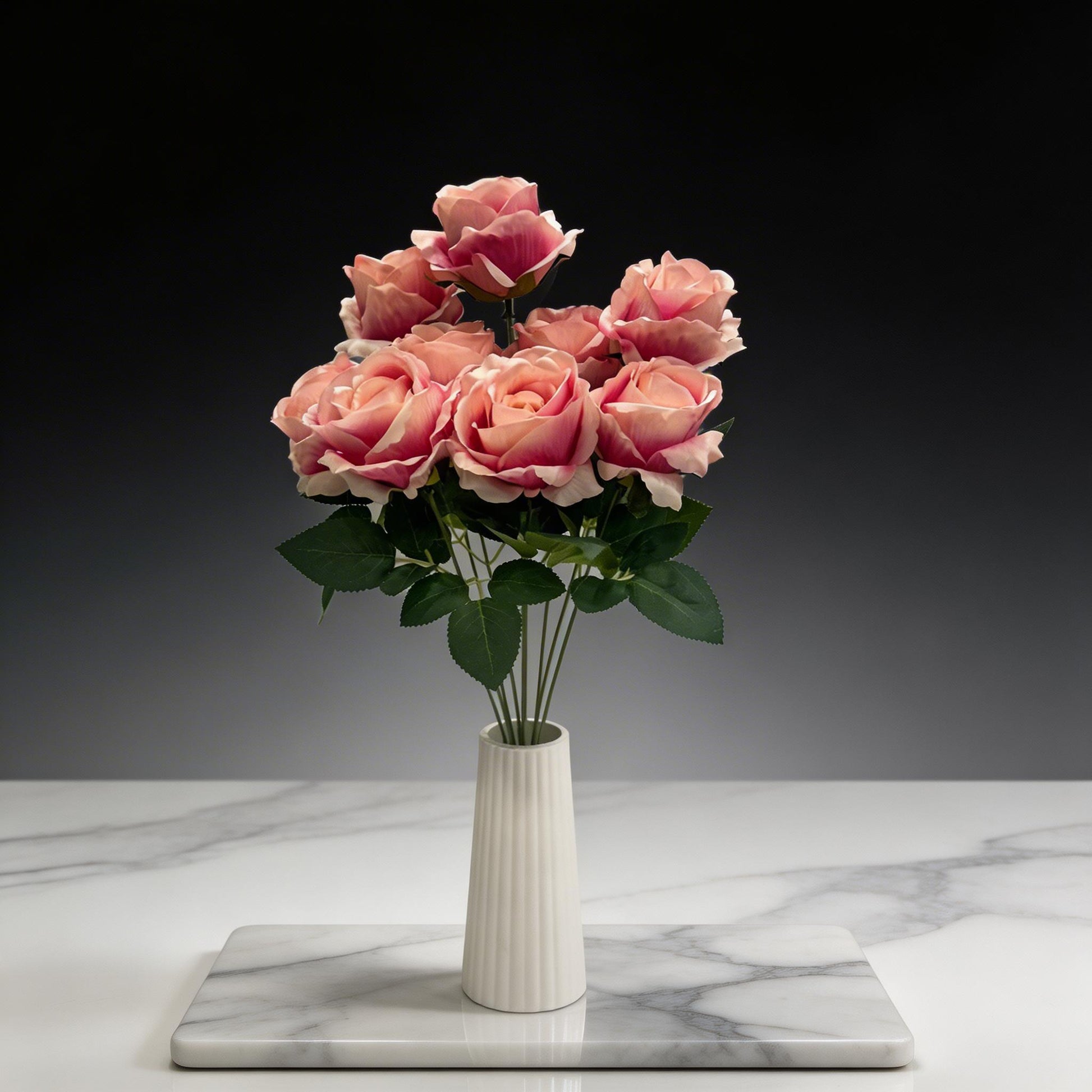 9'LU EBRULİ FUŞYA GÜL DEMETİ YAPAY 50CM BOY